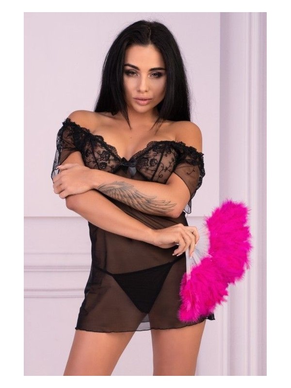 Design elegant: Setul este compus din două piese – un neglijeu delicat și un chilot asortat, ambele în nuanțe de negru clasic, ce conferă un aspect sofisticat și seducător.