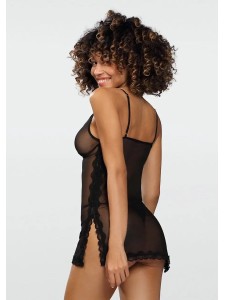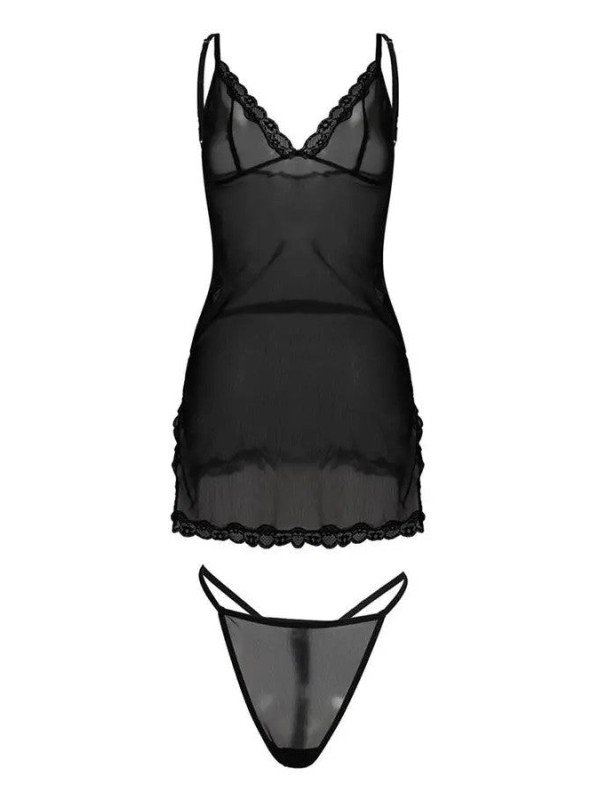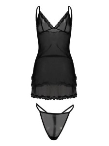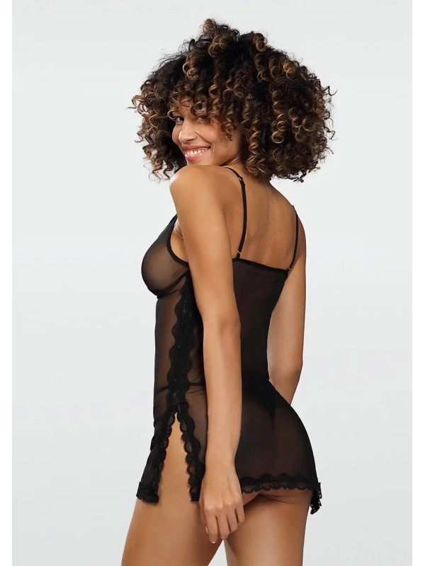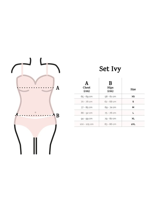 Surprinde-ți bărbatul în doar câțiva pași. Ai grijă de o atmosferă romantică, transformă-te în zeitate cu setul Ivy sexy. Lenjeria intima iti va sublinia frumos bustul si va pune in evidenta picioarele lungi si bine formate. Acest set seducător din tul este format dintr-un tricou transparent și tanga senzuală. Există o dantelă frumoasă cusută la bust și în partea de jos a tricoului. Există o fundă fermecătoare în mijlocul decolteului. Camasa are fante senzuale pe laterale, la care sunt cusute si fundite. Bretelele subțiri ale cămășilor sunt reglabile, astfel încât fiecare femeie să își poată ajusta lenjeria la forma ei. Vei fi tentat de acest model de lenjerie intimă? Surprinde-ți persoana iubită în ea.
