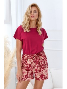 Compoziție: Bluza cu mânecă scurtă și decolteu rotund, completată de pantaloni scurți cu talie elastică confortabilă și cordon pentru ajustare
