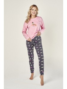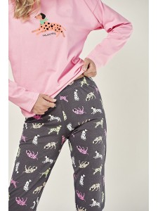 Pijama din bumbac Ruby 2986 de la EvaNoir este alegerea ideală pentru serile tale de relaxare acasă, combinând confortul deosebit cu un design jucăuș și feminin.