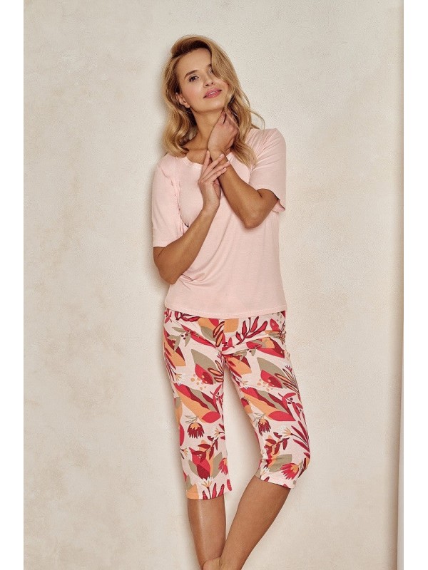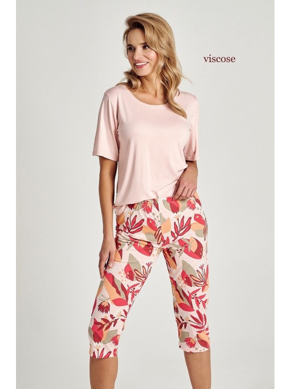 Pijama de dama realizata din bumbac de inalta calitate, compusa din 2 piese. Bluza are maneca scurta, decolteu rotund iar pantalonul este 3/4 si are talie elastica confortabila.